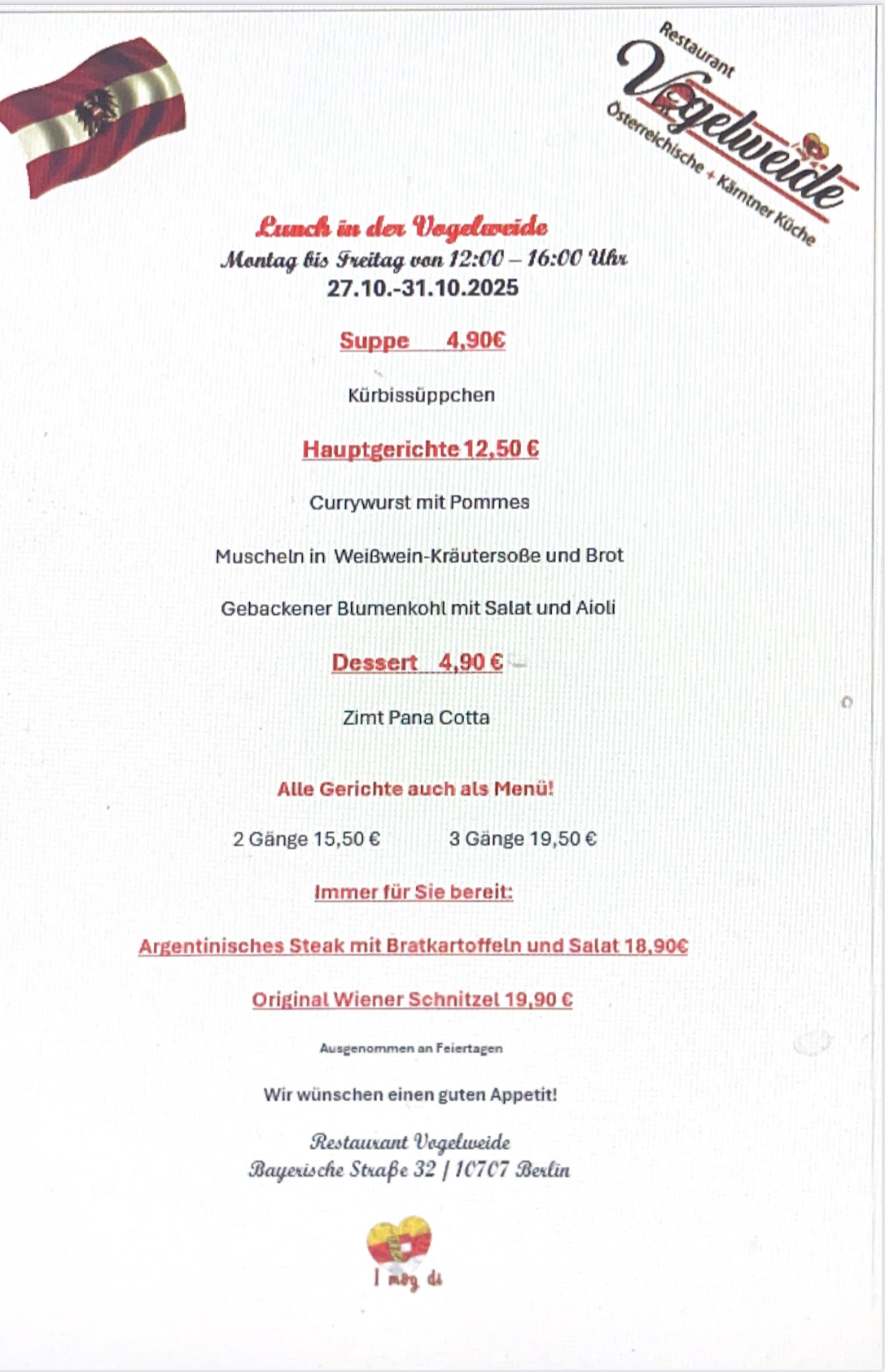 Unser Gasthaus Vogelweide ist ein Stück Kärnten in Berlin, aber Berlin ist in der Vogelweide. Getreu unserem Motto : Kärnten mein Land, Berlin meine Stadt.